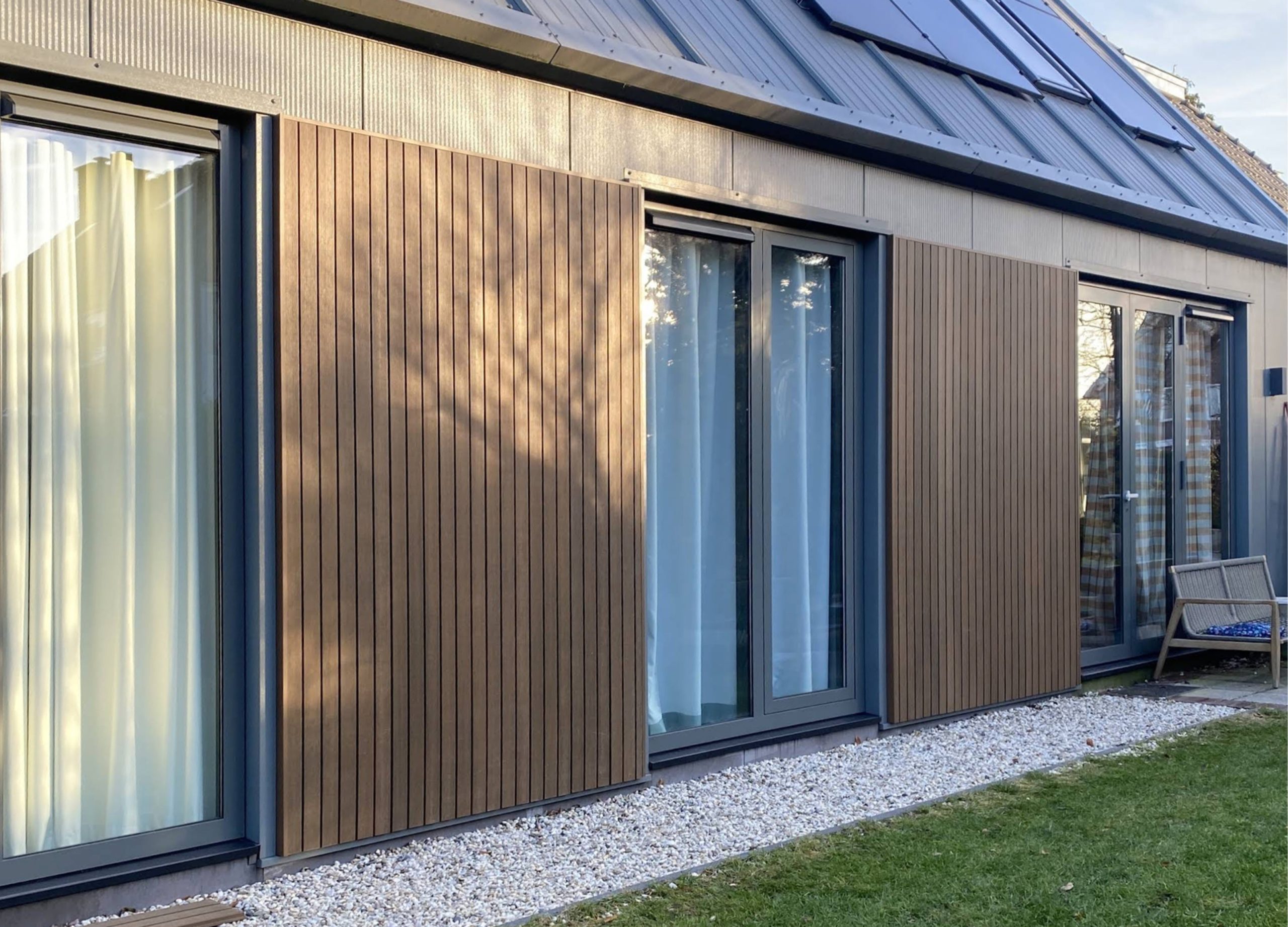 Het voordeel zit vooral in de combinatie van uitstraling en onderhoudsarm karakter. Er is geen schilderwerk nodig en verkleuring is bij moderne systemen beperkt en gecontroleerd.